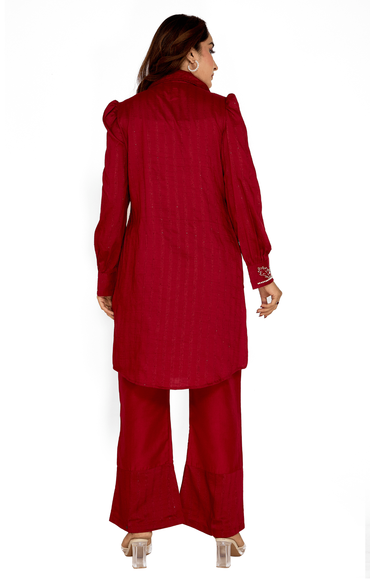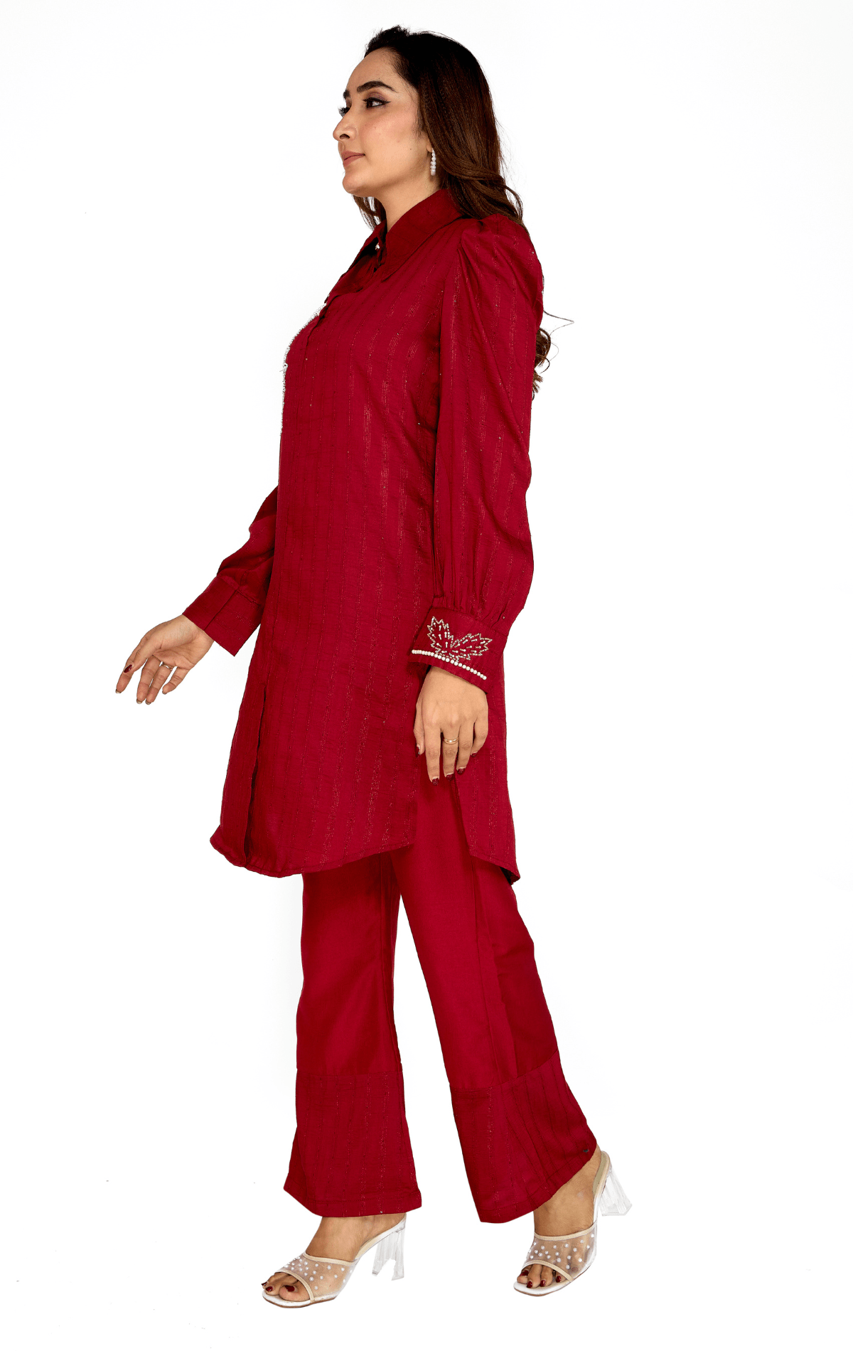 The maroon co-ord set is versatile, can be styled for both casual and festive wear. Delivered quickly to Chandigarh.