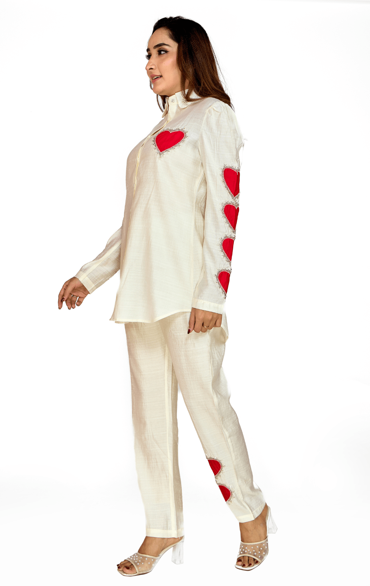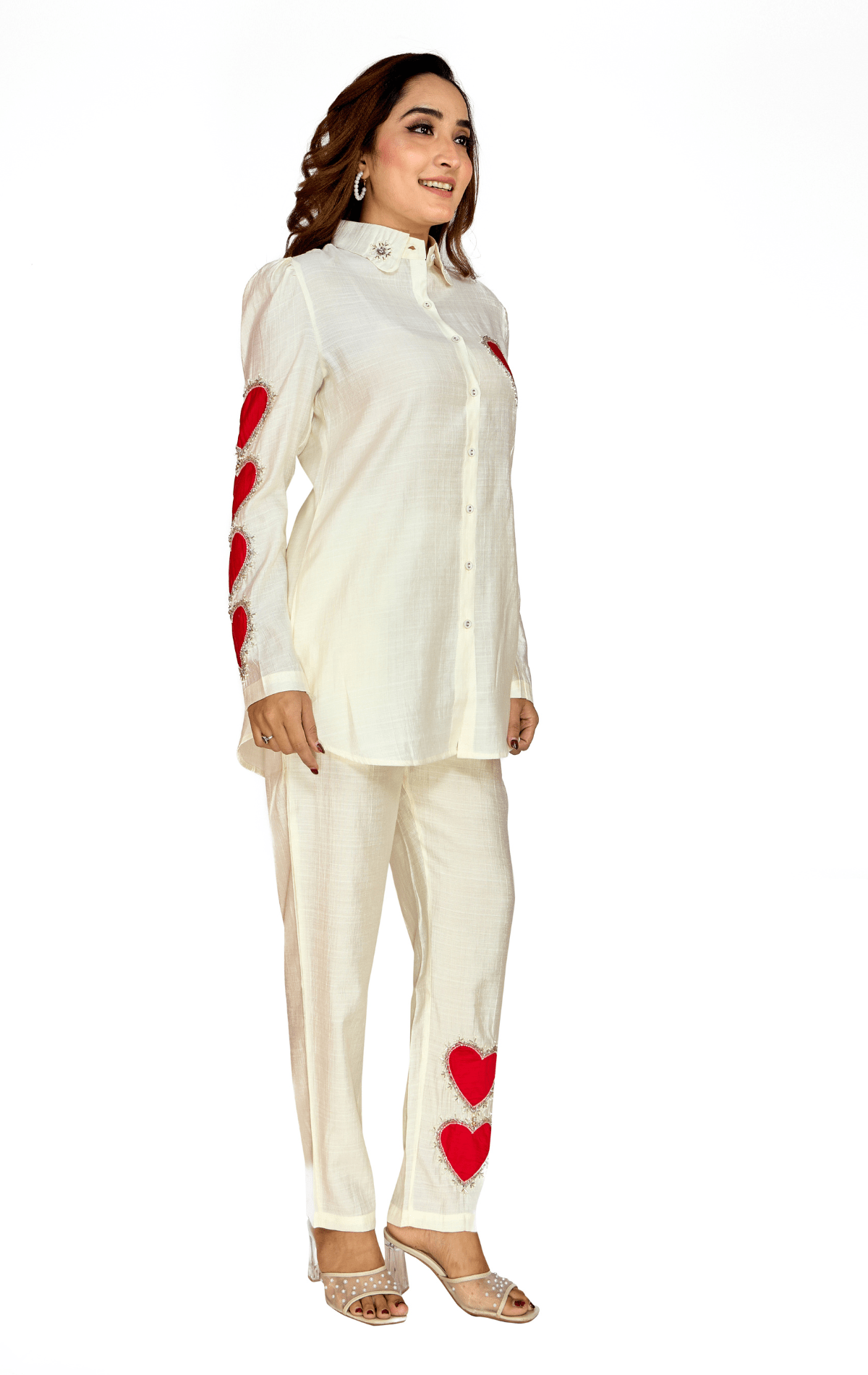 - Stylish purplish pink co-ord set with intricate sequin heart work
