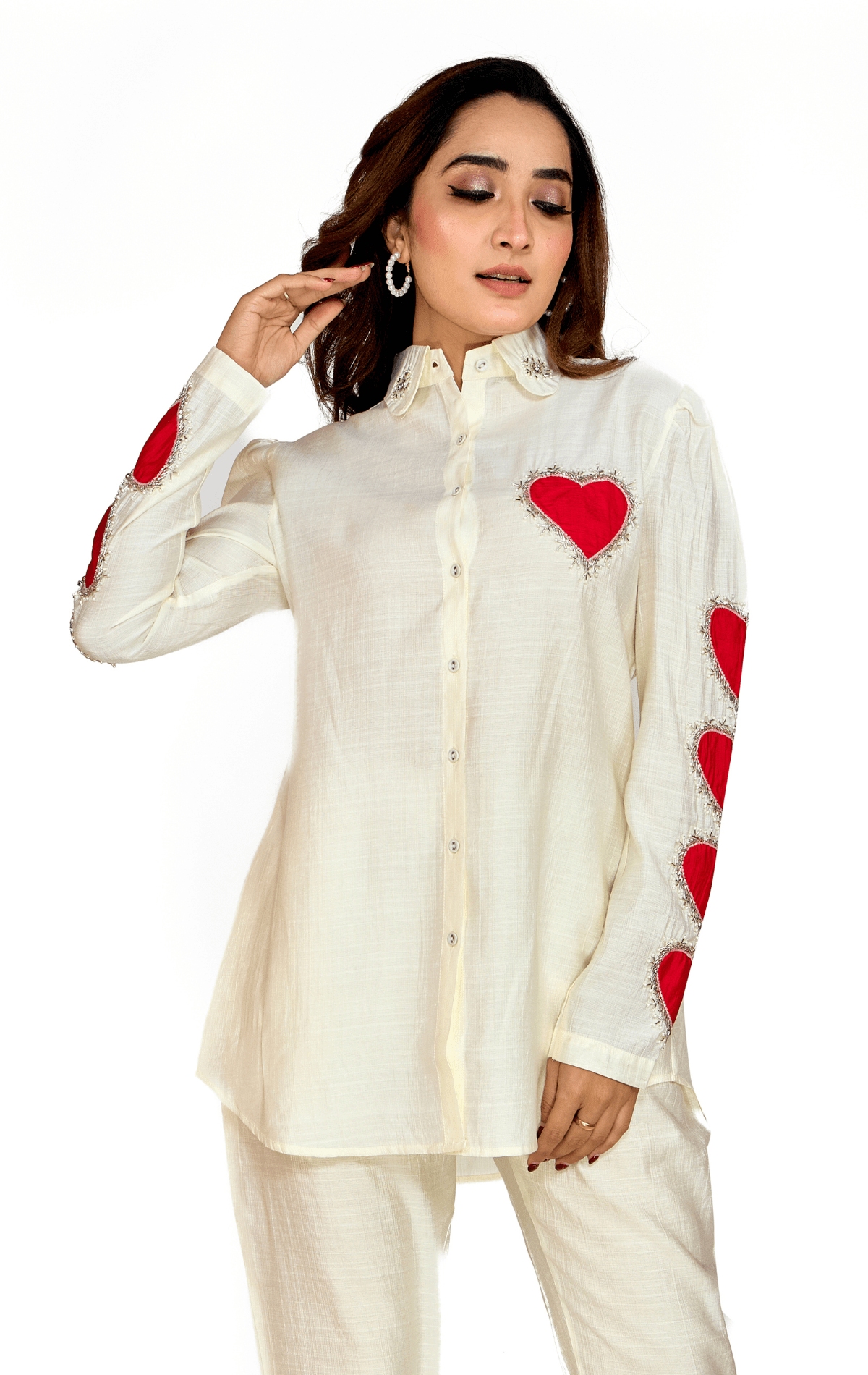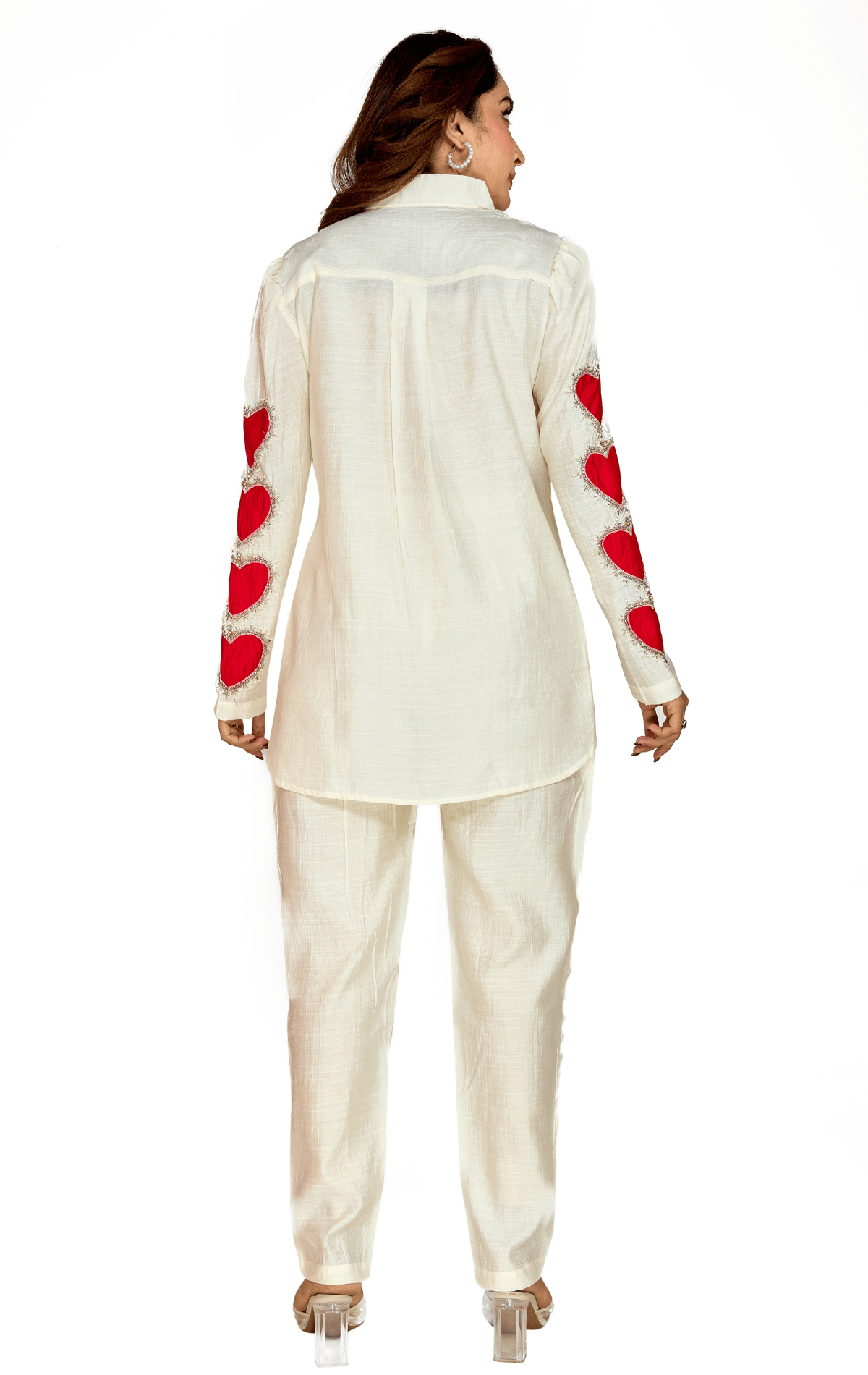 Elegant Off-White Co-ord Set with Leaf Embroidery